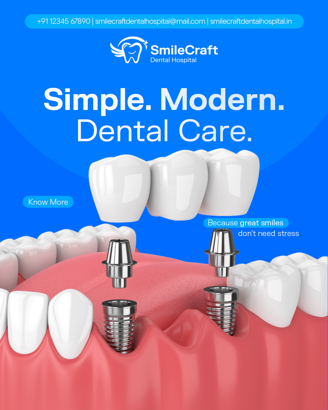SmileCraft Dental Hospital is a place where confident smiles are thoughtfully created. Rooted in care, precision, and comfort, SmileCraft brings together advanced dentistry and a human touch—because great oral health should feel reassuring, personal, and empowering.
